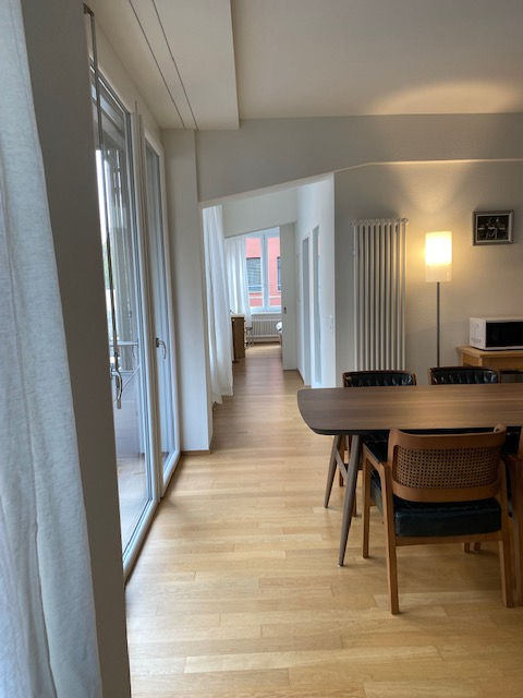 West 7 is a spacious and bright one bedroom apartment in Wiedikon. The general atmosphere of the flat in combination with its high-quality furniture offer a cosy and practical home. Washer and dryer inside the flat as well as specious lift (180cm depth), without stairs on the entrance to the building make the flat higly suitable for family. The train station Wiedikon with connections to all parts of Zurich are 5 minutes walking away. The whole flat is facing backyard of the building, providing quiet atmosphere and enjoyable time on balcony.